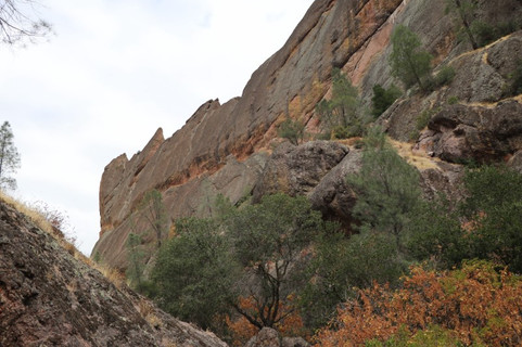 Le lendemain, nous traversons les premières collines de la Sierra Nevada et nous profitons d’un arrêt dans une bourgade mexicaine pour contrôler nos pneus qui commencent à nous faire souci. Nous faisons donc une halte forcée puisque les pneus ne sont livrés que le lendemain. Nous en profitons pour visiter le parc national de Pinnacles que nous n’avions pas prévu de faire. Une magnifique découverte ! Le sentier pédestre nous a permis de traverser un décor incroyable, mêlant roches colorées, arbres verdoyants, couvertures végétales ultra-sèches et un véritable chaos de rochers effondrés que nous avons pu traverser en passant par une grotte. Les enfants ont adoré. Lors de cette balade, Louis a fait une rencontre qu’il n’oubliera pas de sitôt… une belle grosse mygale au milieu du chemin ! Il a fait un saut de 2m en arrière en hurlant !